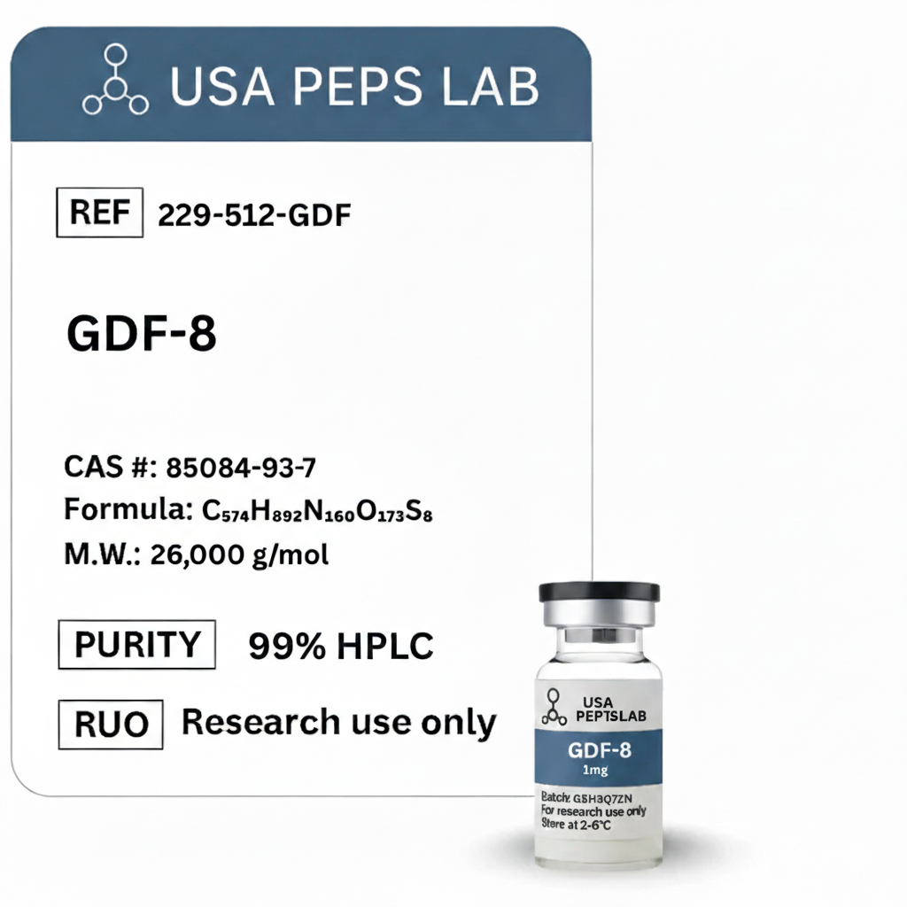 GDF-8 is a premium lab-grade peptide intended exclusively for research and laboratory use. It is manufactured with a focus on high purity and stability to support consistent and reproducible experimental outcomes. Not intended for human consumption, medical use, or diagnosis.